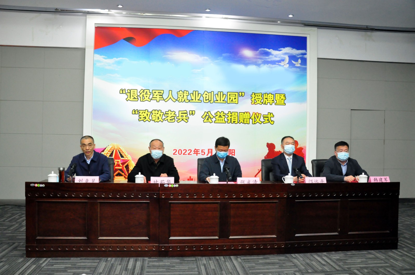 捐贈(zèng)儀式上,張武清、鄺遠(yuǎn)平共同為市炎黃科技園"退役軍人就業(yè)創(chuàng)業(yè)園"揭牌。